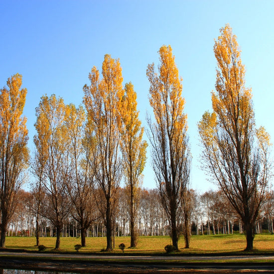 In spring, the Sundancer Poplar leafs out early with bright green, heart-shaped leaves that shimmer in the breeze. Throughout summer, its dense, columnar canopy provides excellent shade and wind protection. The tree’s smooth gray bark and strong, uniform growth make it both functional and visually appealing. In fall, the foliage turns golden-yellow, adding a warm touch of color before winter dormancy.